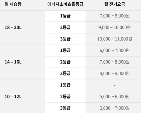 제습효율: 1시간 소비전력으로 몇 리터의 습기를 제거할 수 있는지 나타내는 척도